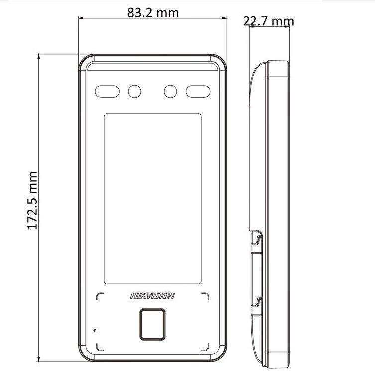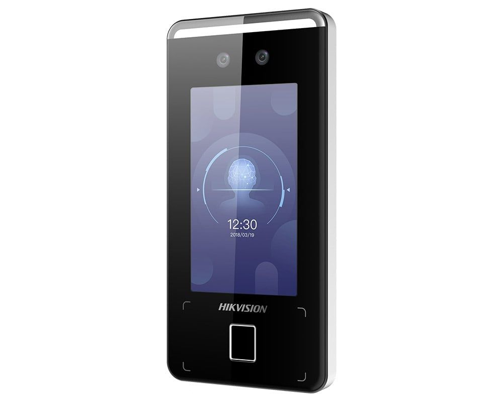 Terminal control access, cu recunoastere faciala si amprenta marca Hikvision DS-K1T341AMF-S. Acest dispozitiv prevazut cu o capacitate de stocare de 1500 memorii recunoastere faciala, pana la 1500 carduri acces tip Mifare, 1500 amprente si 150,000 evenimente. Este un dispozitiv inteligent, suporta recunoasterea faciala chiar si in conditii de iluminare scazuta. Montaj aparent si poate fi instalat atat in interior cat si la exterior.